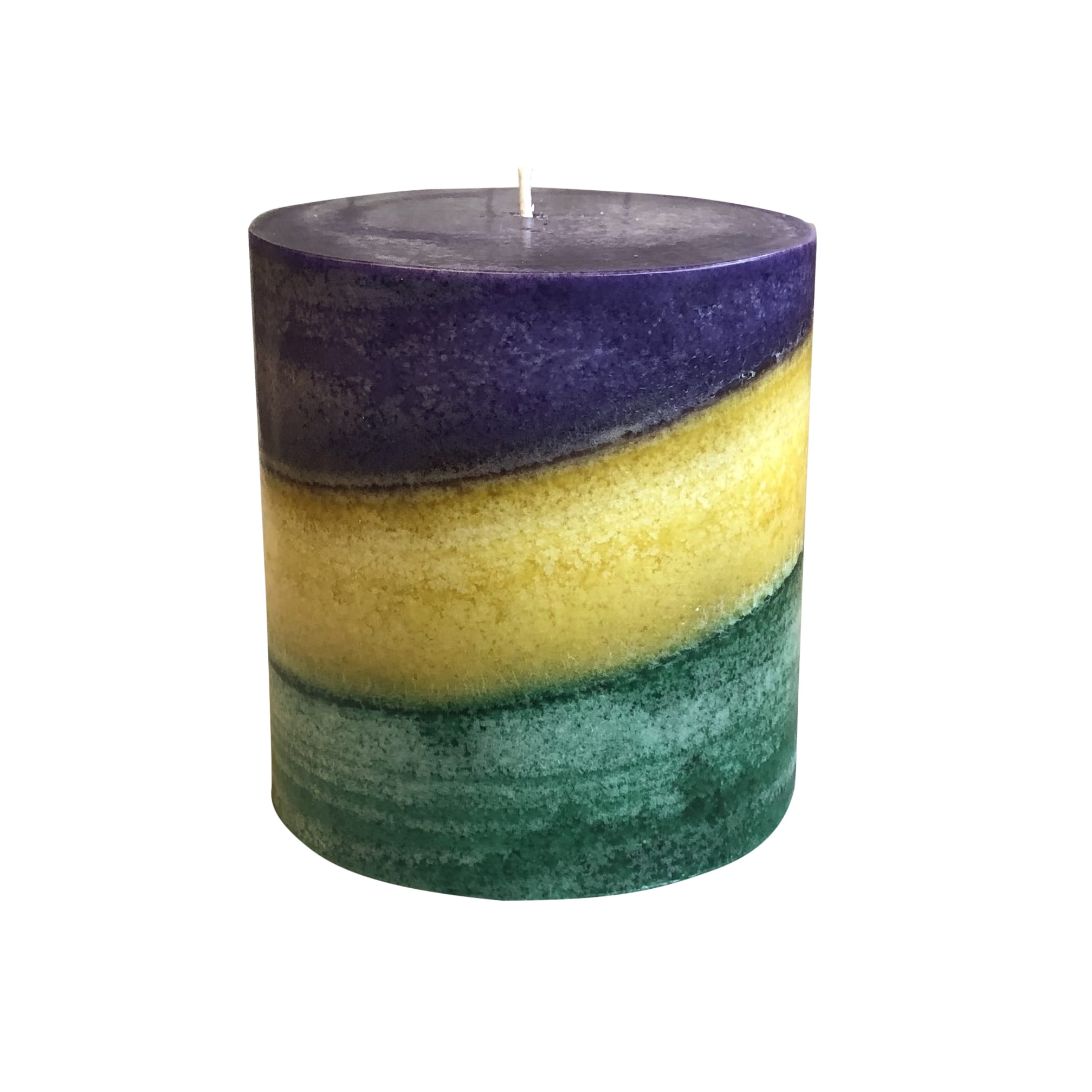 Liven up the party with our Mardi Gras festive candle. This brightly colored candle brightens up the room and fills the air with a soft fragrance and lots of fun. LIMITED EDITION