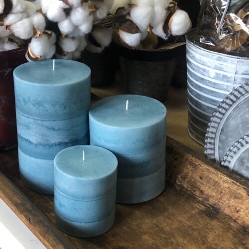 Blended hues of soft blue highlight the refreshing look and feel of this candle. The Sweet Dreams unscented candle is hand poured in three layers and available in 14 different sizes to mix and match creating your own perfect set.